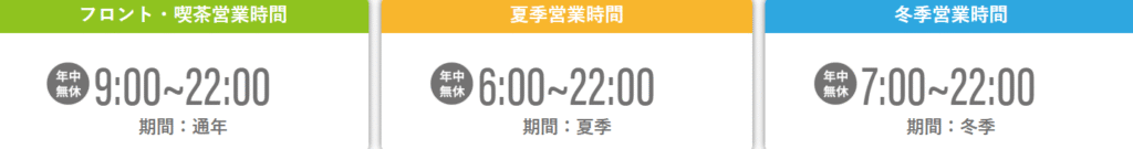 基本営業は6:00~10:00で年中無休となります。日曜日のみ21:00営業終了となります。